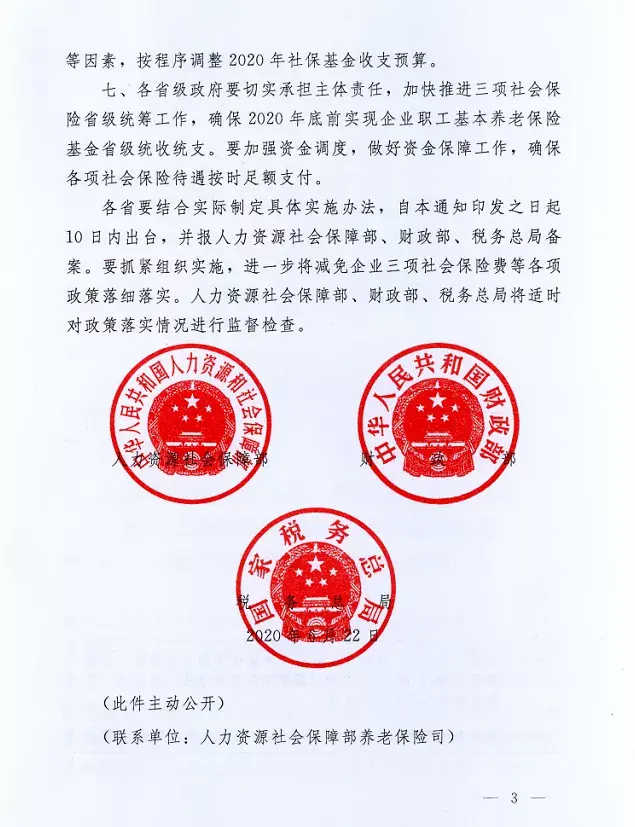 各省(除湖北省外)对大型企业等其他参保单位(不含机关事业单位,下同)三项社会保险单位缴费部分减半征收的政策,延长执行到2020年6月底。湖北省对大型企业等其他参保单位三项社会保险单位缴费部分免征的政策,继续执行到2020年6月底。
