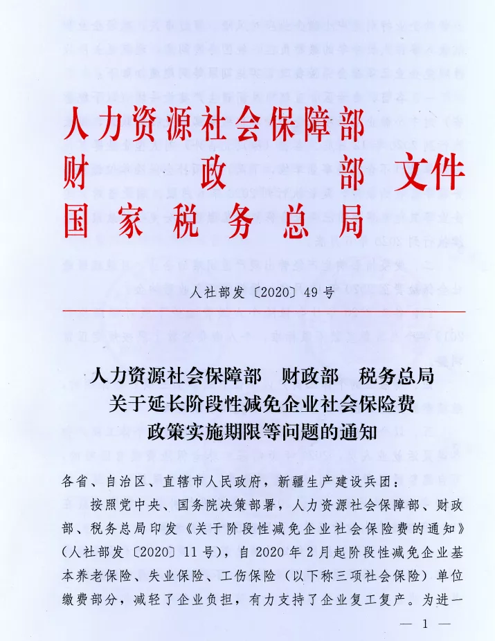 01、中小微企业三项社会保险减免政策全部延长到年底